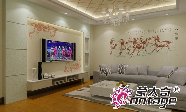 蒙太奇硅藻泥背景墻更是擁有專業的施工團隊,整個制作過程都由專業技工師傅,妙手空空打造完成。業主可根據自己的要求定制顏色、風格、圖案等等,這樣即能完美將個人品味和特色融入其中。喜歡中國古字畫、古詩詞的朋友們,同樣也能讓技師輕松締造。